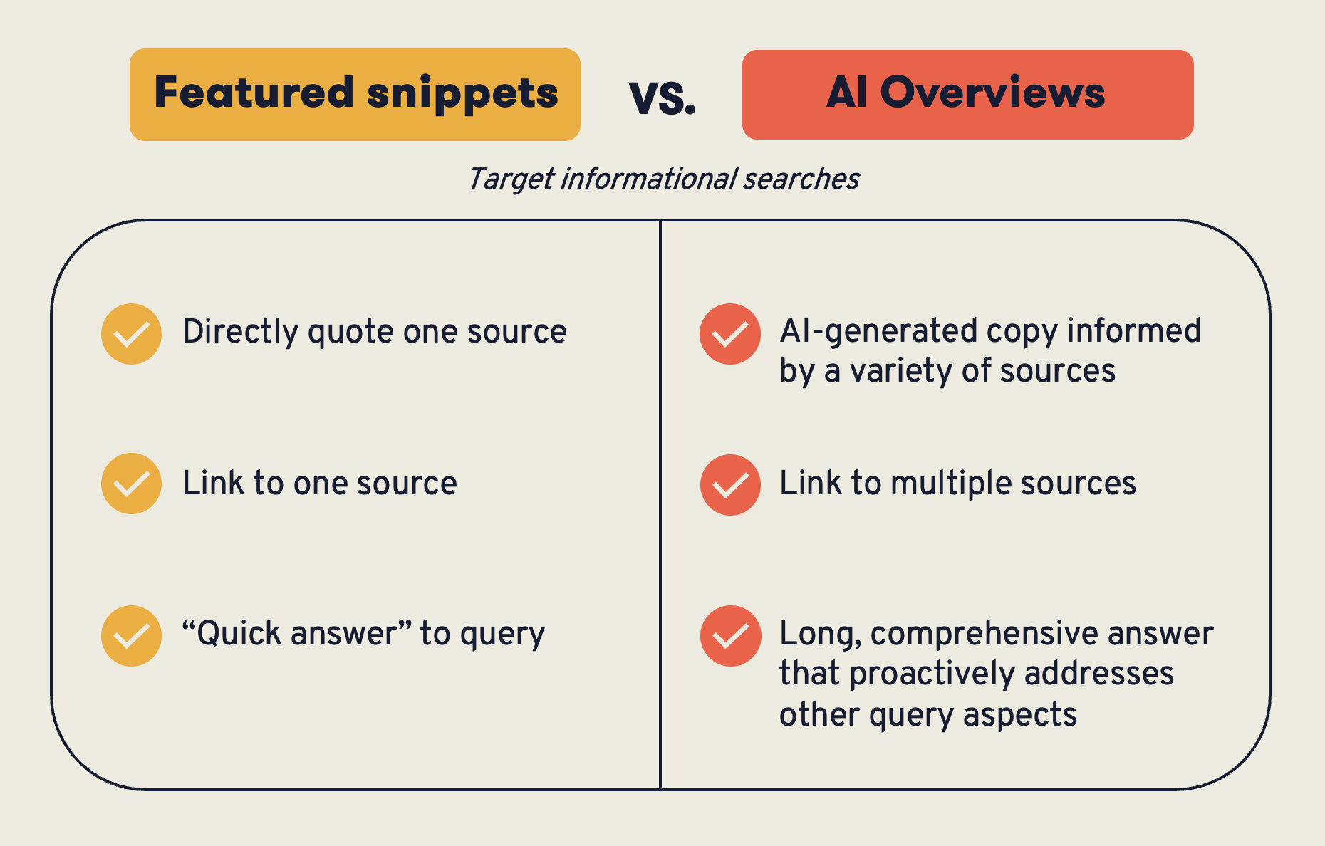 Okay, perhaps that’s a little hyperbolic, but not by much. The explicit, unavoidable inclusion of AI in search results marks the first big change to the Google Search landscape since “Featured Snippets” in 2014. And AIOs really are the natural evolution of the featured snippets: